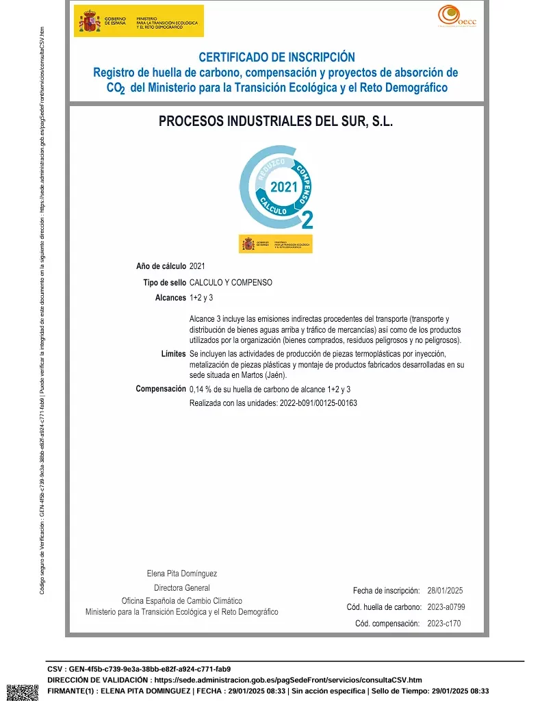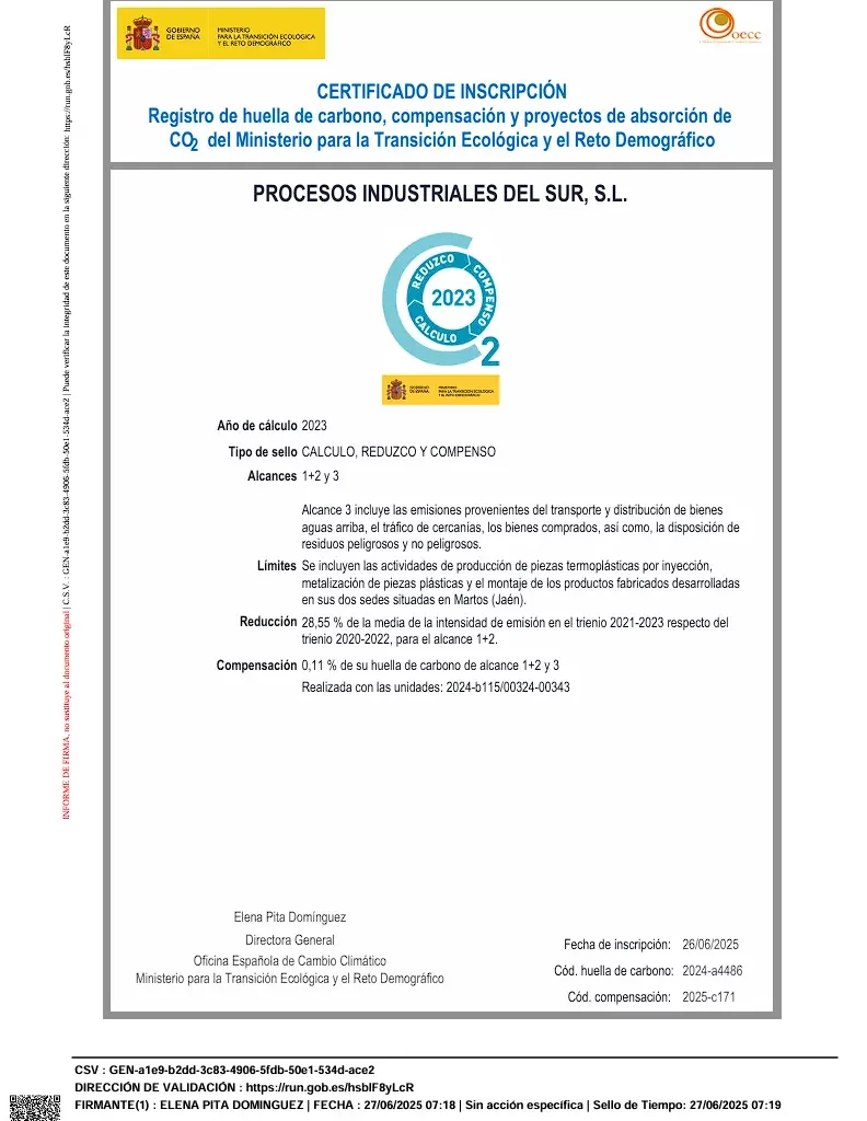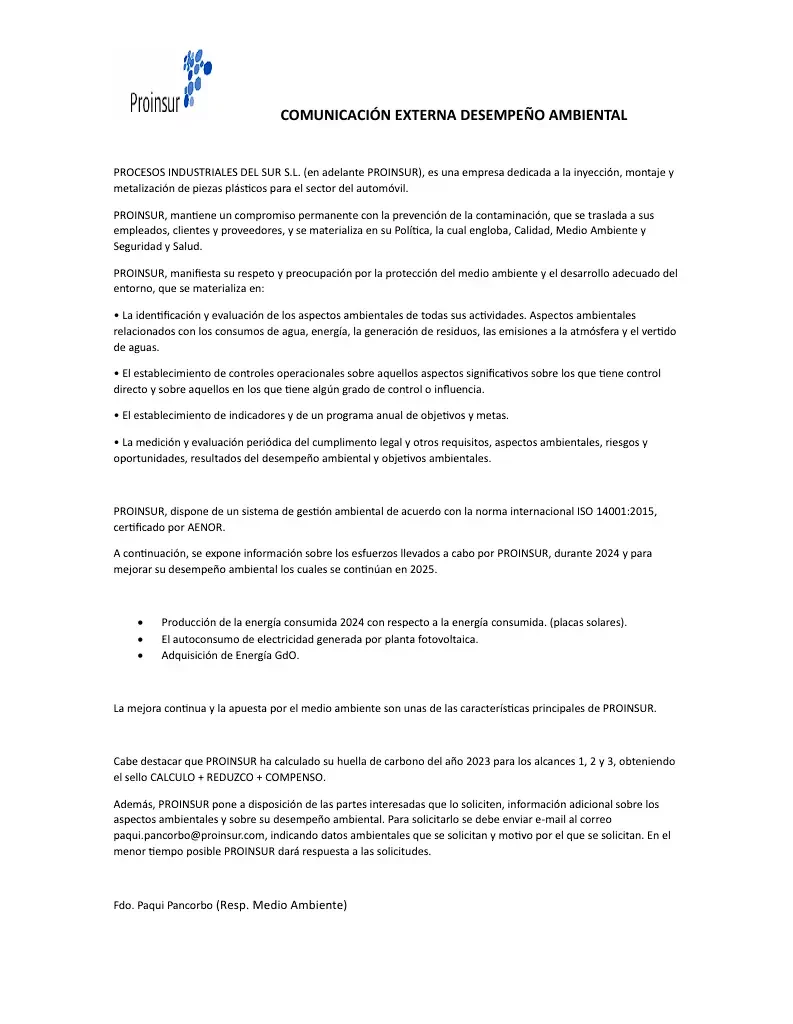 Certificado ER-0818-2013 Certificado RA02-0024-2013 (EN) IQNetES-0818-2013 Certificado ER-0929-1999 Certificado ER-0929-1999 (EN) IQNetES-0929-1999 Informe Inventario GEI Proinsur 2023 Certificado RA02-0016-2007 Certificado RA02-0016-2007 (EN) Certificado de Inscripción (2019) Certificado de Inscripción (2020) Certificado de Inscripción (2021) Certificado de Inscripción - Compensación Huella (2021) Certificado de Inscripción (2022) Certificado de Inscripción (2023) Certificado de Inscripción - Compensación Huella (2023) Comunicación Externa Desempeño Ambiental Fondo nacional de eficiencia energética Fondo nacional de eficiencia energética